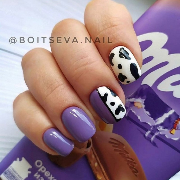 Коров’ячий принт точно буде в тренді сезону весна-літо 2022. Плями різних форм і розмірів чудово виглядають у нейл-арті. Безумовно, він виглядатиме шикарно на ваших нігтиках і зробить ваш образ трендовим і стильним.