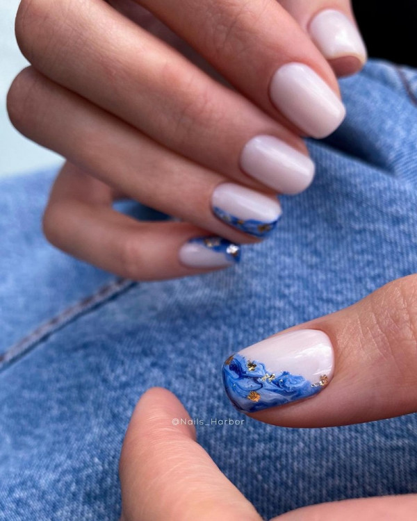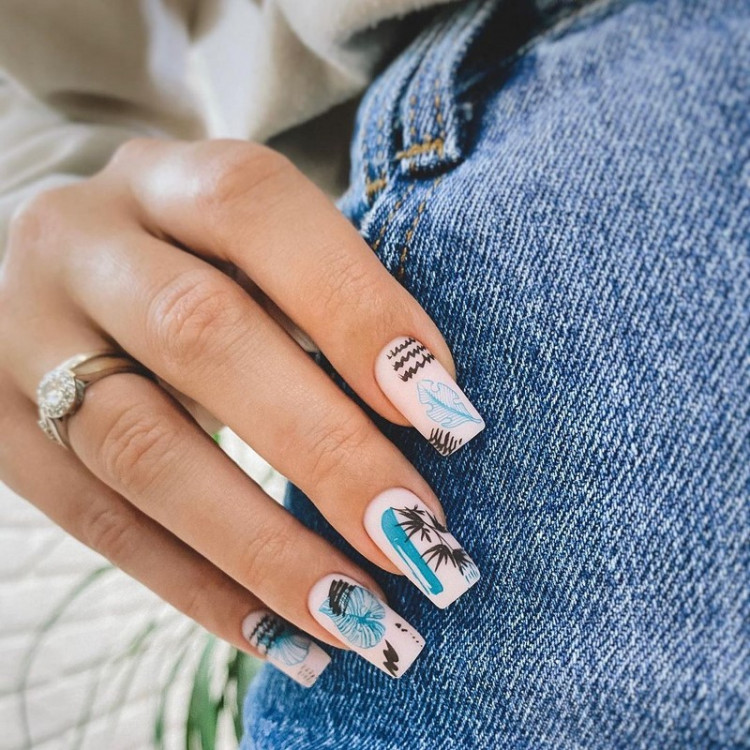Зобразити море на ваших нігтях – це ідеальний варіант для манікюру у відпустку. Біло-блакитні відтінки чудово поєднуються із шоколадною засмаглою шкірою ваших рук. Високі хвилі з білою піною, гарячий жовтий пісок, красиві скелі та багато інших морських тем можуть бути зображені на ваших нігтиках.