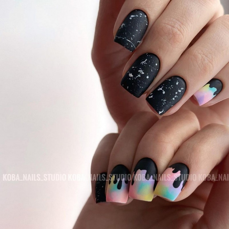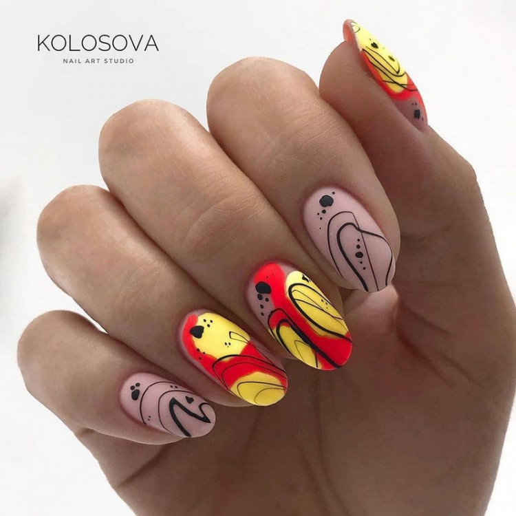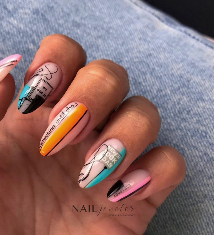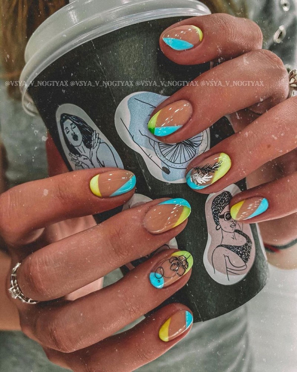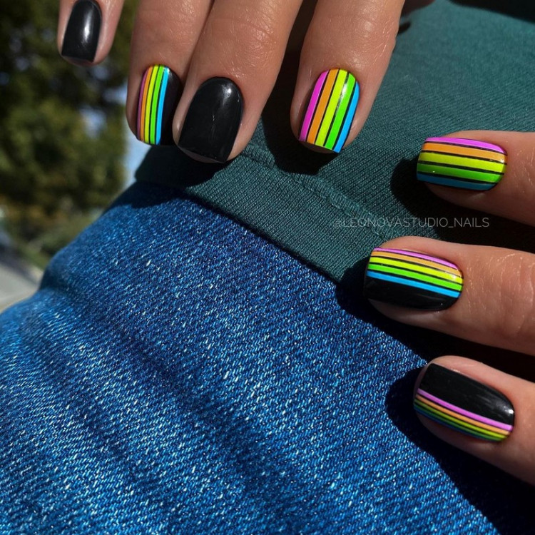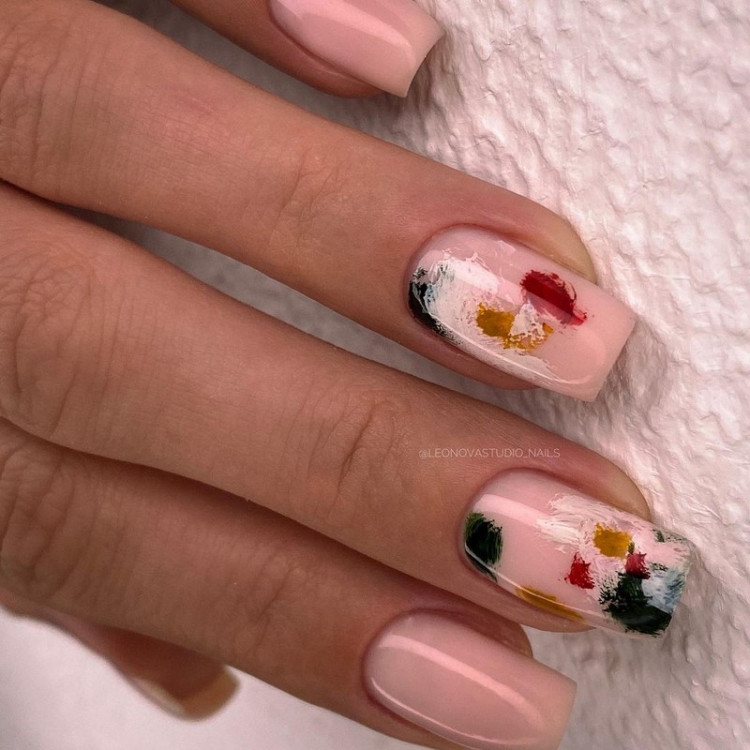 Додати яскравих фарб у ваш манікюр ви зможете, нанісши на нього мазки яскравих кольорів. Вони виглядають дуже незвично, що додасть вашому образу ефектності і підкреслить красу ваших ручок. Такий манікюр підійде як для коротких нігтів, так і для довгих.