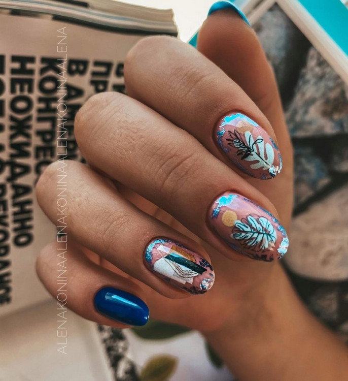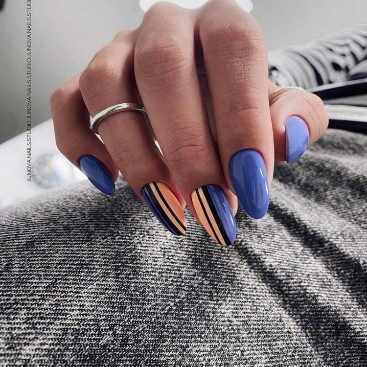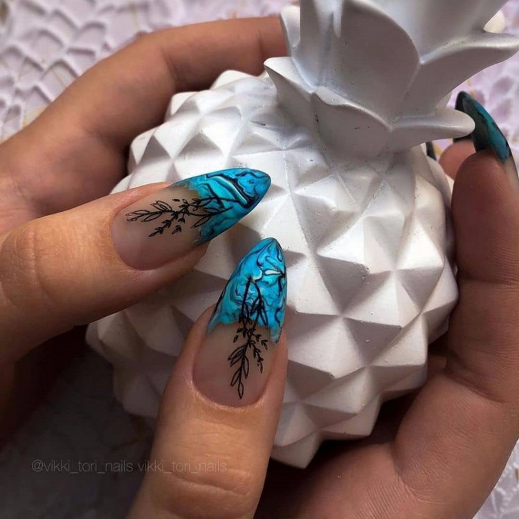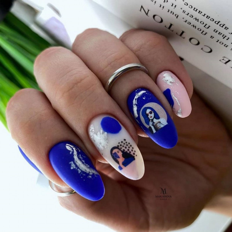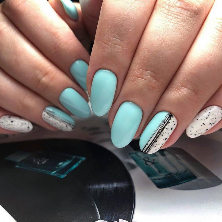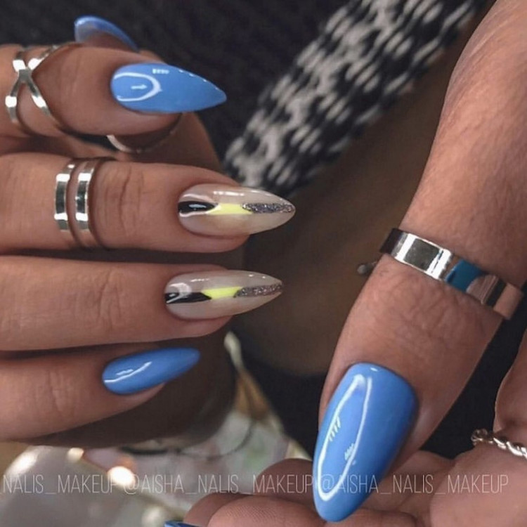 Такий колір символізує небо, яке саме навесні та влітку має насичений блакитний колір. Цей відтінок у манікюрі чудово поєднується з: