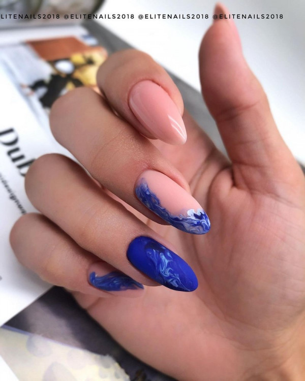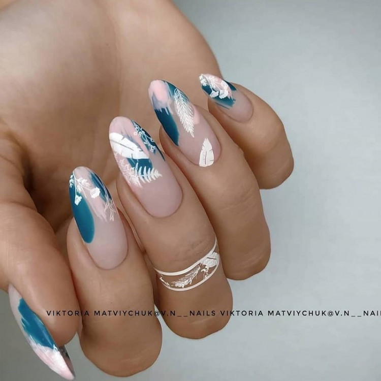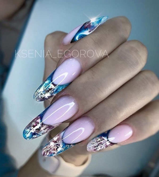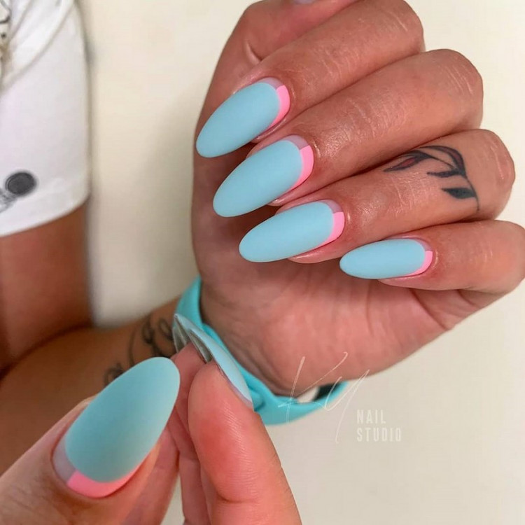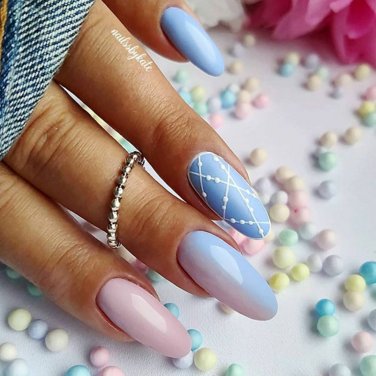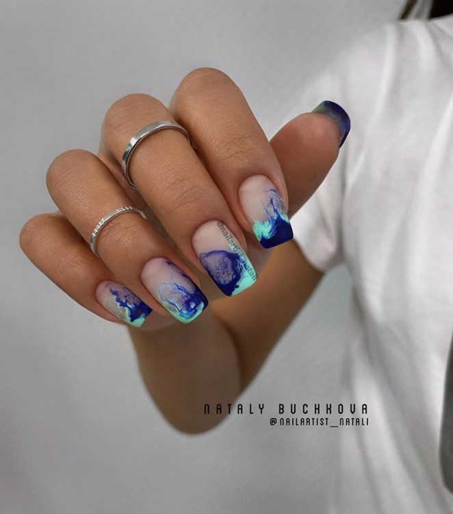 Такий колір символізує небо, яке саме навесні та влітку має насичений блакитний колір. Цей відтінок у манікюрі чудово поєднується з: