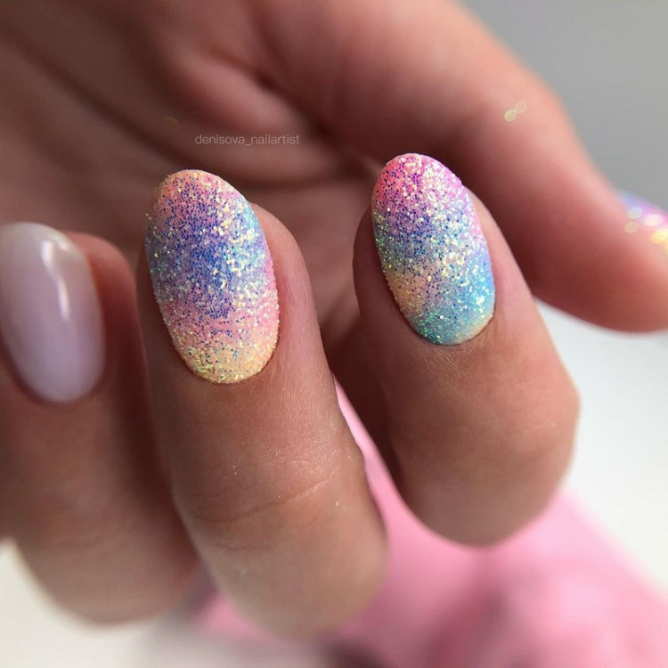 Бите скло – це імітація осколків в манікюрі. Їх роблять із фольги, яка дуже красиво переливається усіма кольорами веселки. Такий дизайн надає вам ефектної родзинки, і чудово виглядає у вечірньому образі.