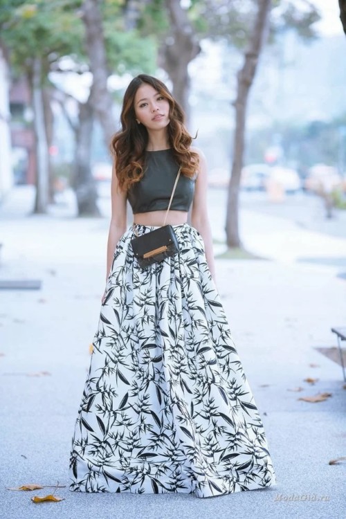 У поєднанні зі спідницею в підлогу укорочені топи допомагають створити ультрасучасний або аристократичний образи. Такий цілком доречний буде як на романтичному побаченні, так і на урочистому заході.