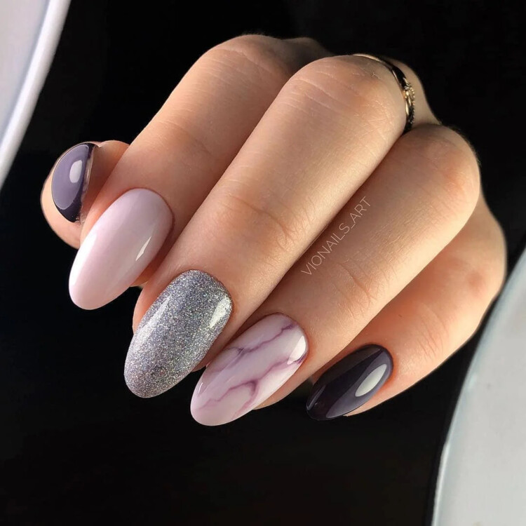 На круглих нігтях краще вибирати більш лаконічний дизайн без занадто яскравих деталей. Справа в тому, що овальна форма наближена до натуральної форми пластини, тим сам зайва прикраса буде виглядати занадто виразно, а це зіпсує загальне враження від манікюру. Для круглого манікюру в зимовий сезон вибирайте ніжні і стильні дизайни, які відрізняються елегантністю деталей.