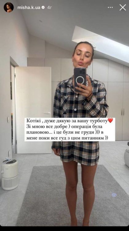 “Котики, дуже дякую за вашу турботу. Зі мною все добре! Операція була планованою…Це були не груди! У мене поки все гуд з цим питанням” – прокоментувала зірка.