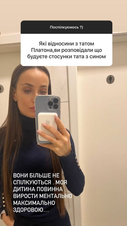В інстаграмі фоловери поцікавилися у знаменитості, чи продовжує Платон спілкуватися зі своїм татом. Мішина відповіла, що ні і пояснив чому:”Вони більше не спілкуються. Моя дитина має вирости ментально максимально здоровою”.