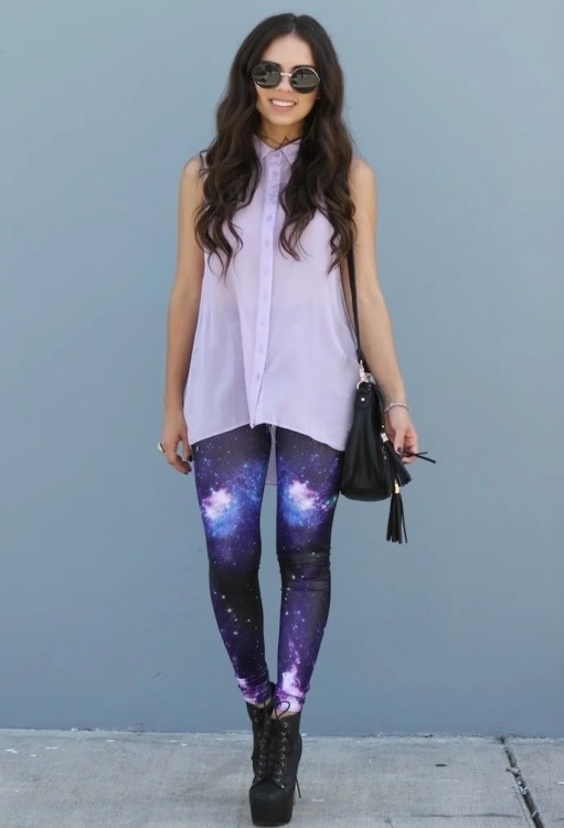 Образи для веселого вечора дають велике поле для експериментів. До того ж, в моду в цьому році увійшли стильні легінси з незвичайними принтами, тому придбайте відразу декілька моделей, щоб отримати статус fashion-ікони.