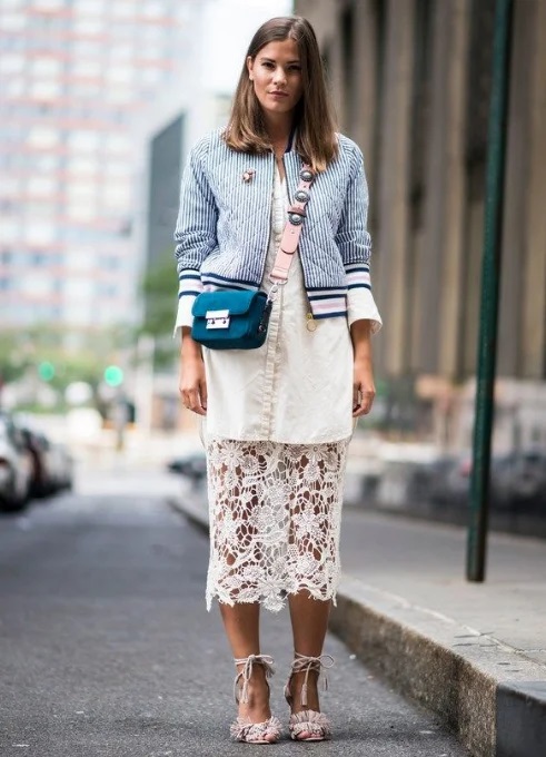 Якщо ця куртка так добре “дружить” з спідницями, то значить, і з сукнями / сарафанами у неї, швидше за все, теж складуться хороші стосунки. Такі поєднання ніколи не будуть виглядати занадто нудно і консервативно, а крім того, вони зайвий раз доведуть, що повсякденні неформальні образи можуть бути і практичними, і красивими.