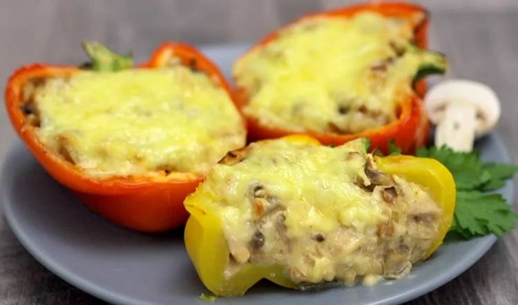 Кладемо начинку в перці і перекладаємо у форму, змащену олією. Зверху поливаємо сметаною і запікаємо 15 хвилин при температурі 200 градусів.