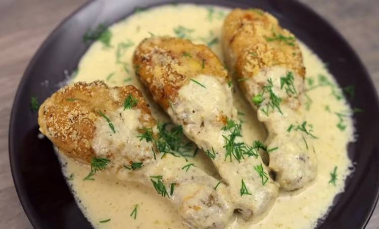 Знімаємо з вогню та заливаємо курячі ніжки.