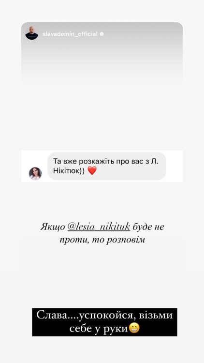 Шанувальники почали вгадувати, хто ж є таємним прихильником Лесі і припустили, що це Слава Дьомін. У себе в інстаграмі ведучий відреагував і написав, що про все розкаже, якщо Леся дозволить.