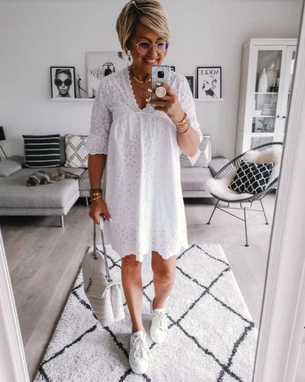 У літньому гардеробі має бути, як мінімум, одна сукня. Вибирайте модель максимально простого крою. Краще світлу, наприклад, кремову або бежеву. При використанні різних аксесуарів така сукня може виглядати, як строго, так і нарядно.