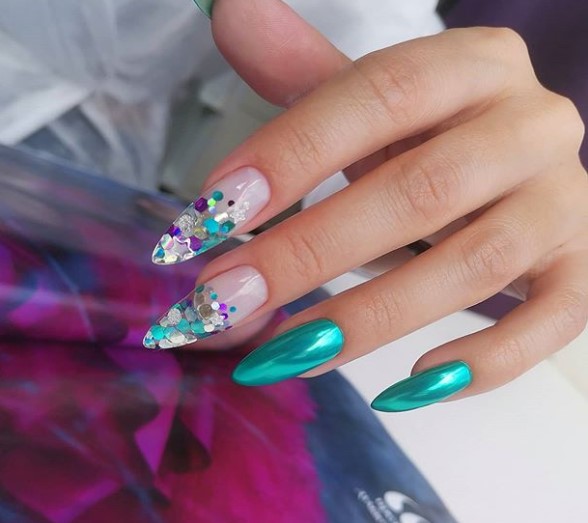 При створенні м’ятного манікюру не бійтеся звертатися до неймовірно популярних технік і варіантів декору. Адже гарний нейл-арт створюється завдяки уяві, а не клонування 105 дизайну, який ви знайшли в мережі. Не бійтеся поєднувати, здавалося б, не поєднувані кольори, додавайте в ці кольори декор, наприклад, гліттер, стрази, фольгу, скотч-стрічку, павутинку. І не забувайте про такі техніки як френч, омбре, фен-шуй, negative space і так далі.
