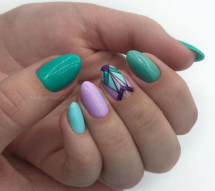 Не бійтеся при створенні м’ятного нейл-арту експериментувати і з малюнками. Вони можуть бути нанесені на один нігтик або навіть на всі. Головне, це не порушувати в манікюрі гармонію і красу. Придивіться до модних квіткових і геометричних малюнків, до абстрактних, тваринам і так далі. Ви можете також оформити малюнок за допомогою декору. Дуже цікавий манікюр з узором може вийде, якщо ви звернетеся до стразів, фольги, намистин або гліттеру.