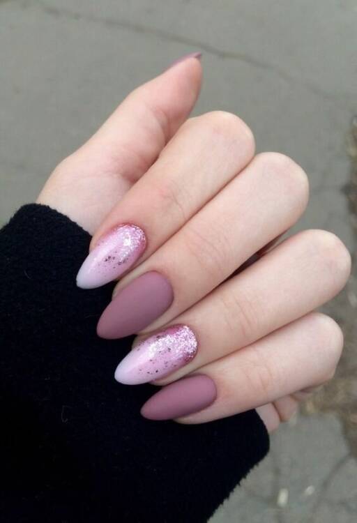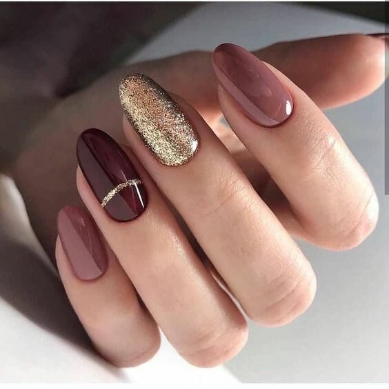 Хочеться більше урочистий манікюр, тоді вибирайте лак кольору mauve, але з блискітками в складі. Вийде сяючий, святковий дизайн.