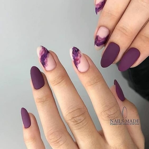 Чудовий і витончений дизайн. Кілька пальчиків покрийте однотонним лаком кольору mauve, а на одному або двох зробіть серпанок за допомогою цього відтінку.