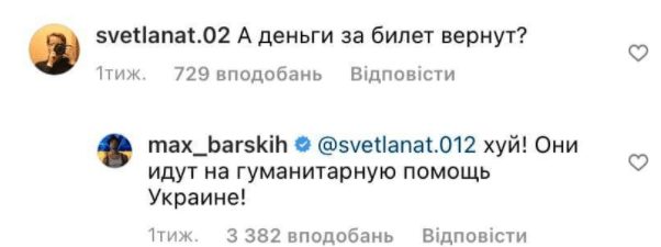 Проте, Макс Барських вирішив не повертати кошти мешканцям країни-агресора. Музикант заявив, що всі гроші перерахує на потреби Збройних сил України.
