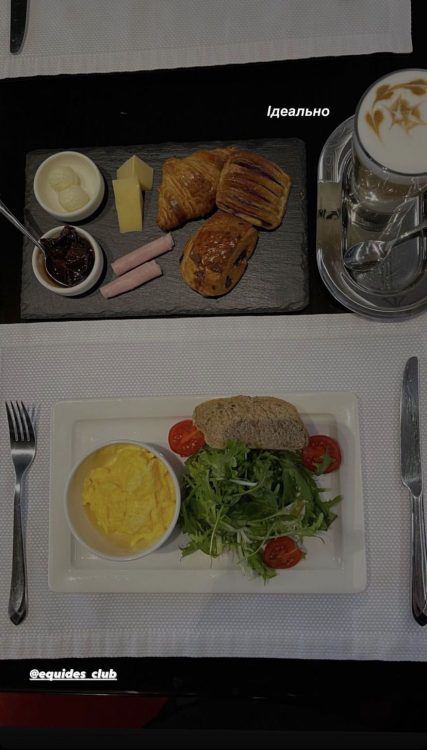 Згодом знаменитість показала, як проводить час у готелі та показала знімки смачних страв, якими тішить себе.