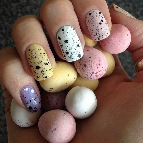 Хаотичні цятки на нігтях, що нагадують забарвлення перепелиних яєць, також дуже популярні.