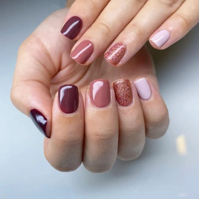Ще один варіант градієнта. Тільки він створюється не на одному нігті, а манікюр виконується на кожному нігтику схожими за кольором відтінками.
