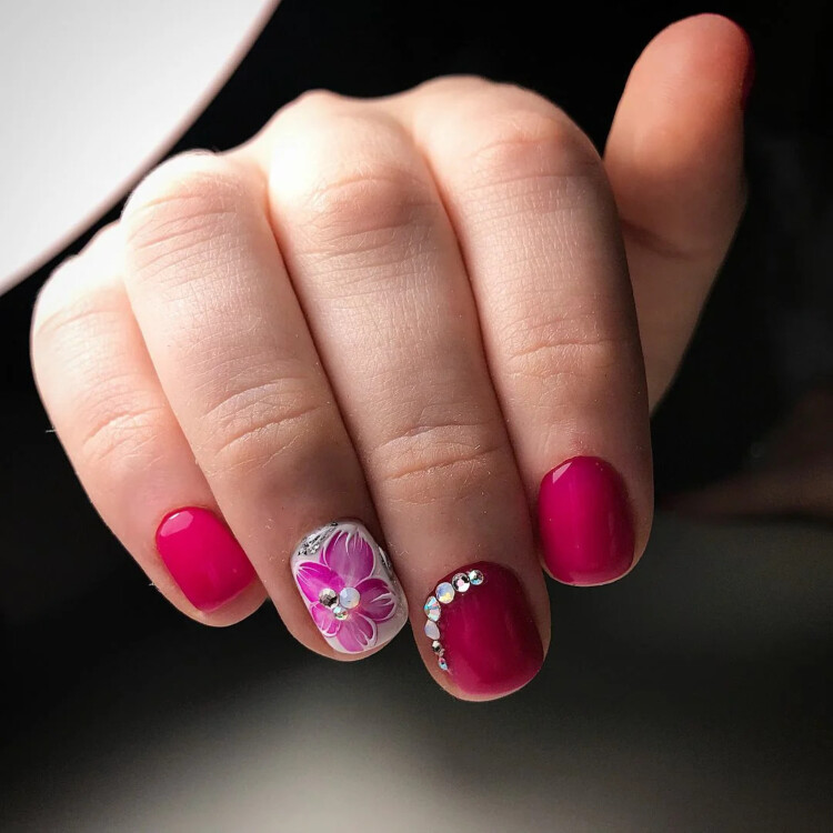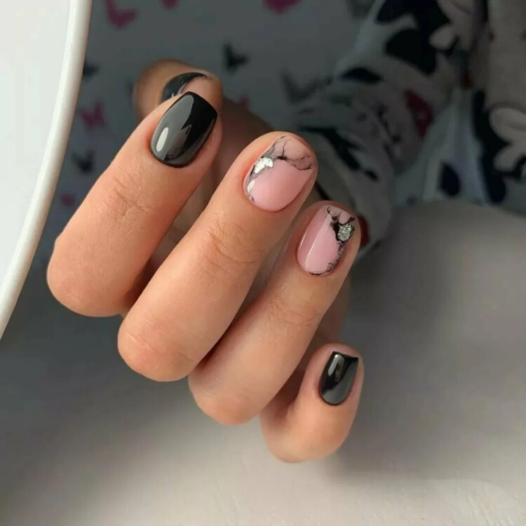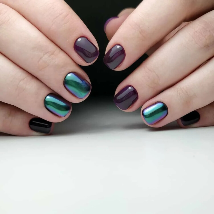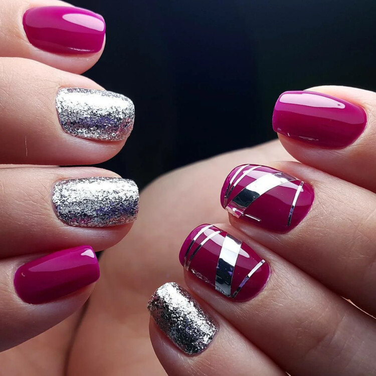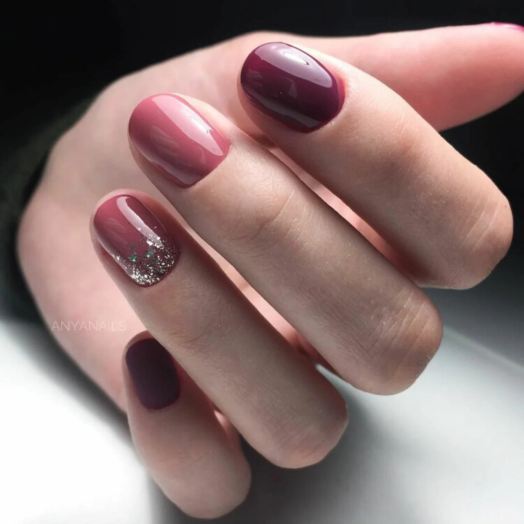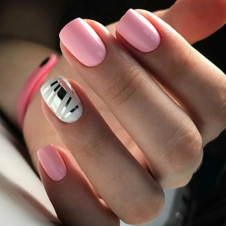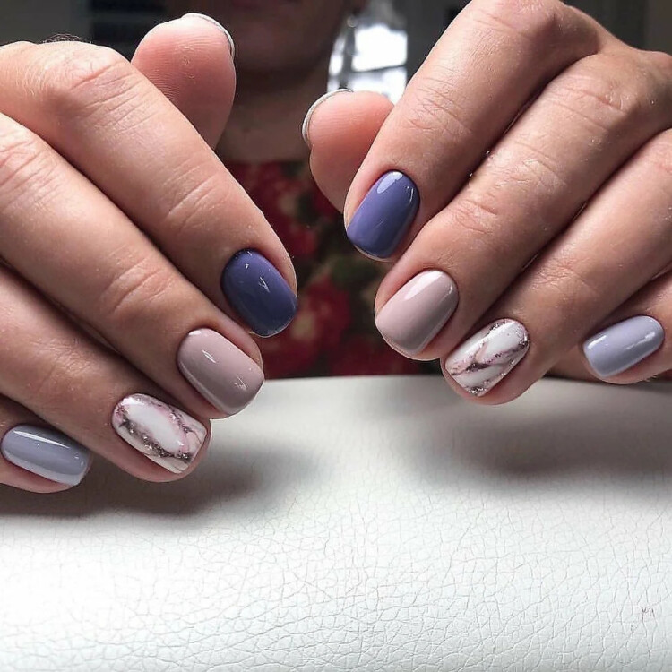 Добре виглядає просто однотонний манікюр, відтінок можна вибрати на свій розсуд. Також популярна ідея в вигляді комбінованого варіанту з декількох відтінків. Або ж можна виконати контрастний манікюр, він виглядає більш ефектно.