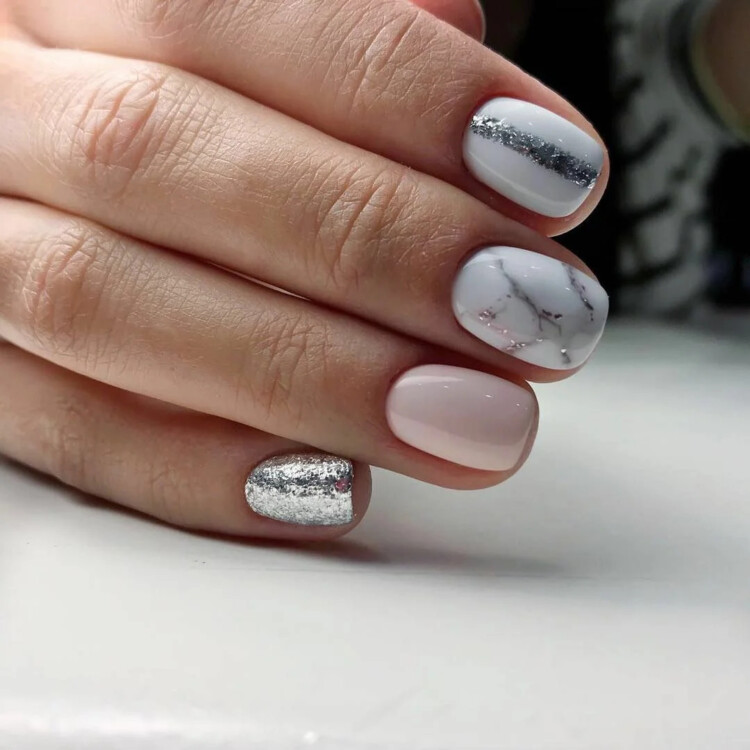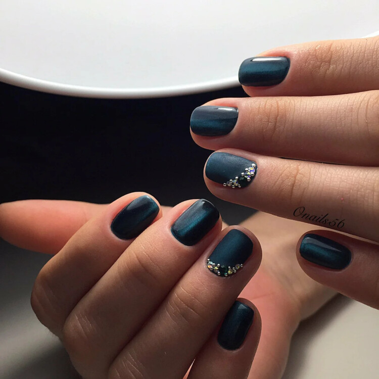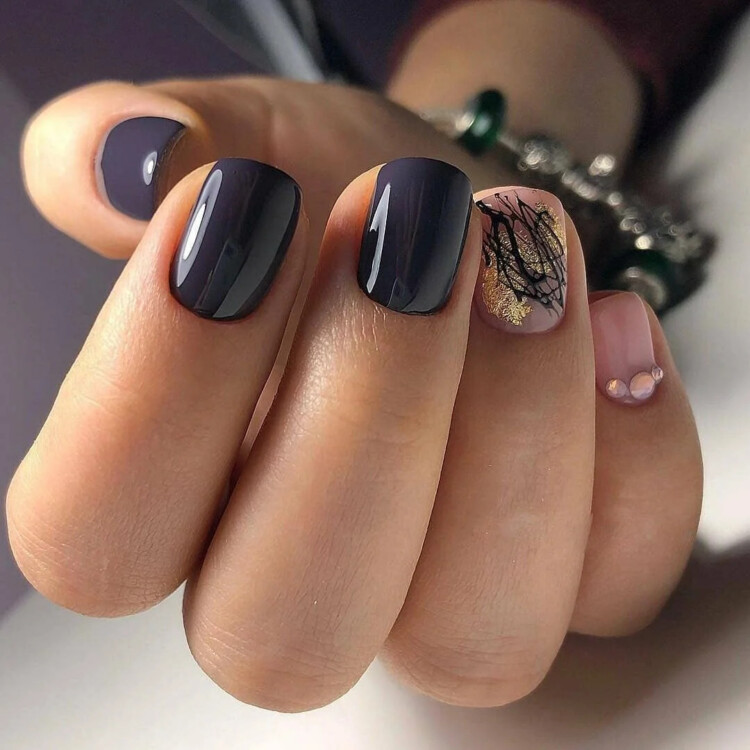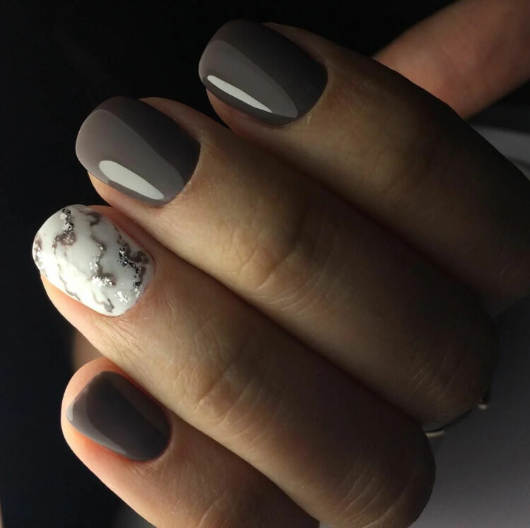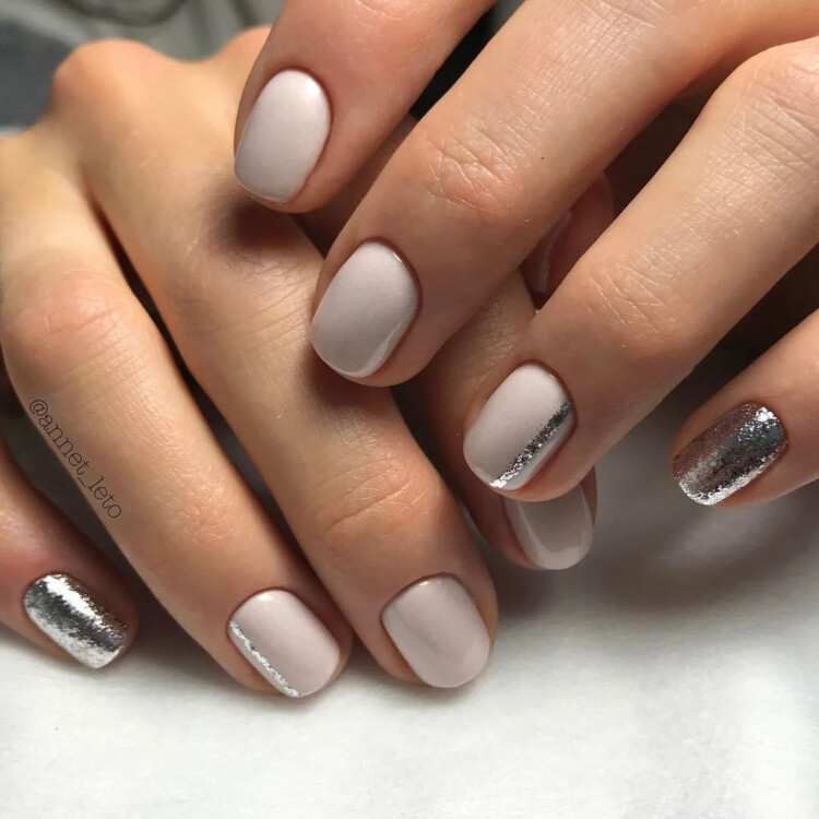 На коротких нігтях можна виконати будь-який варіант манікюру. Восени можна почати з більш ніжних і приємних відтінків. До них відноситься пастель і нюд. У вигляді декору можна додати стрази або блискітки. Також прекрасно поєднується фольга і втірка.