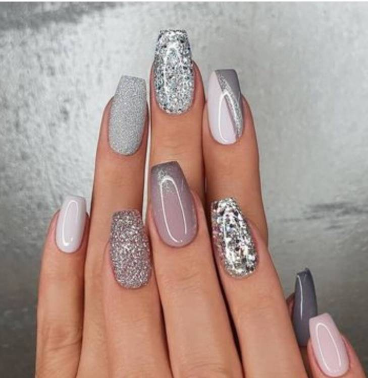 Розкішні квадратні нігті можна прикрасити стразами, мерехтливими лініями, глітерним розсипом, виконавши з них лунки-трикутники, обрамлення, гарні варіації візерунків і т.д.