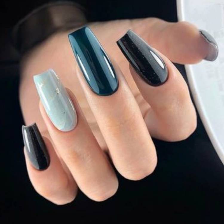 На тонких і довгих пальцях такі нігті виглядають вишукано та акуратно. Потовщені пальчики строгі геометричні форми нігтів також роблять довгими та витонченими.