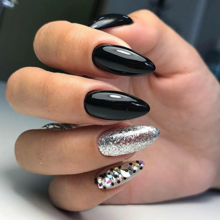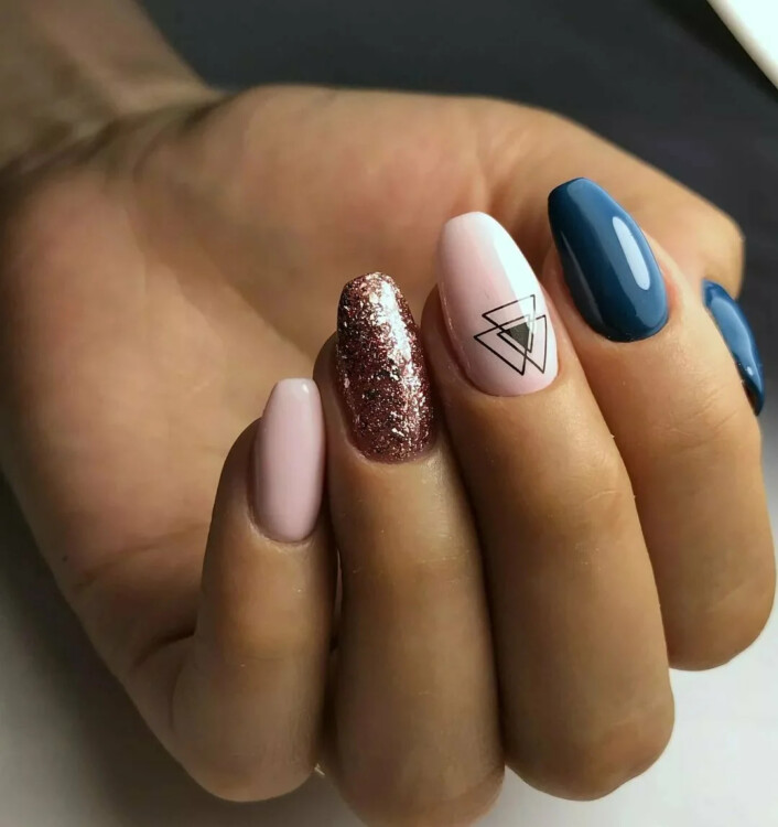 Не варто забувати про геометрію. Цей елемент декору залишається завжди на піку популярності. Він прекрасно поєднується з будь-яким образом і ідеально підійде для будь-якого заходу. Стрази та блискітки – це стандартний варіант для манікюру. Хто не хоче придумувати щось нового, може сміливо вибрати саме ці елементи декору.