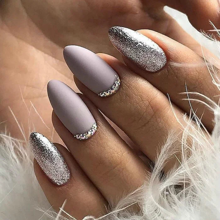 Якщо хочете виділитися взимку – вибирайте світлі відтінки. Ну, а якщо розбавите однотонний манікюр сріблястими блискітками та помірною кількістю стразів, ваші нігтики зможуть скласти конкуренцію новорічній ялинці.