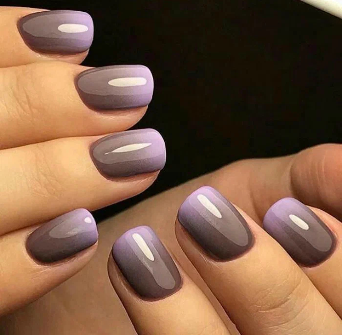 Модний градієнт, виконаний у сливово-бузкових тонах – найуніверсальніший варіант осіннього манікюру.