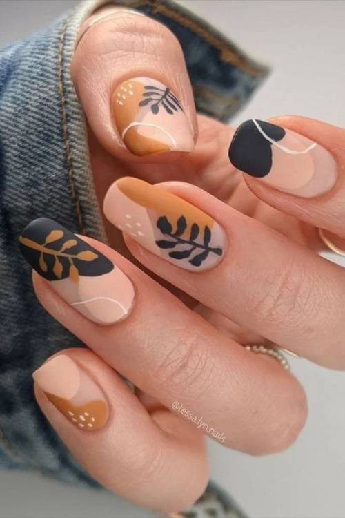 При виборі дизайну зверніть увагу на малюнки на тему природи. Наприклад, на гілочки та листочки, рослинні орнаменти, натхненні фарбами лісу. Такі арти вдало поєднуються з рудим, з персиковим, з пастеллю і стануть оригінальним акцентом.