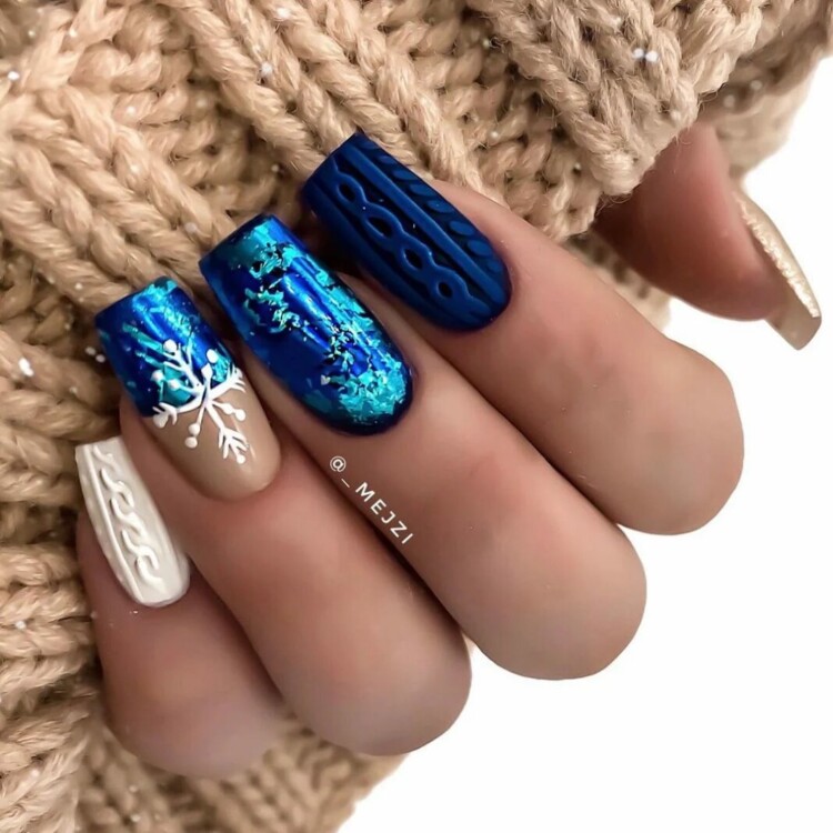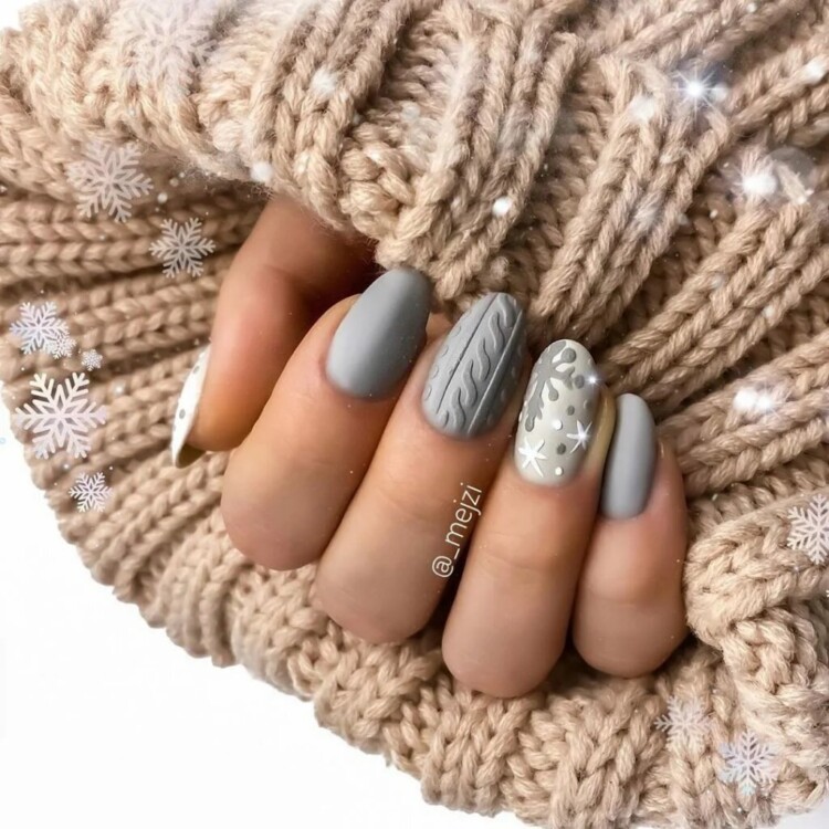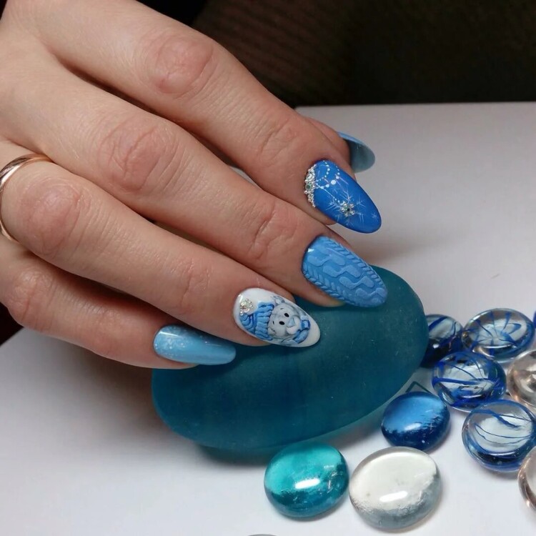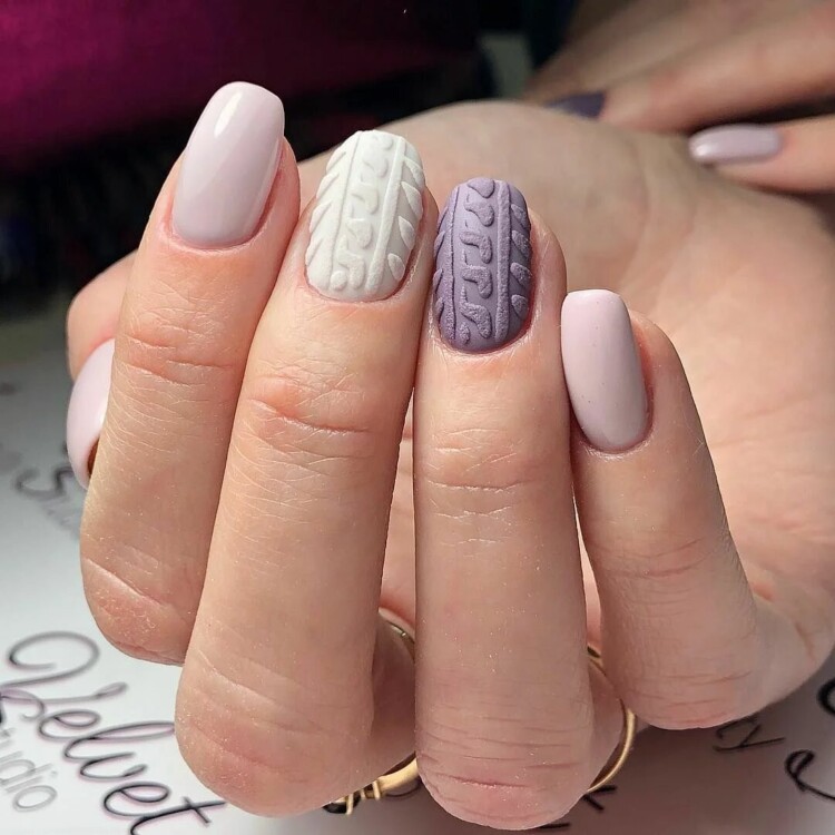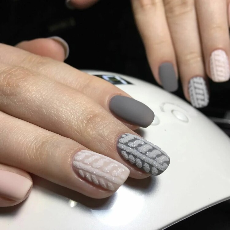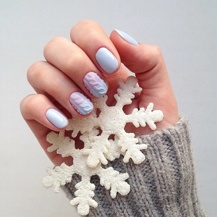 Взимку дуже актуальні такі відтінки, як синій, блакитний, срібний, білий. А також можна виконати в абсолютно будь-якому відтінку, який найбільше сподобається. Взимку має попит “в’язаний” візерунок. Він чудово виглядає саме в зимовий період. Такий манікюр передає своєрідний затишок і комфорт.