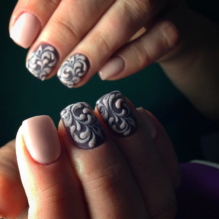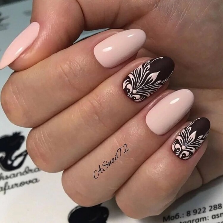 Варто придивитися до комбінованого варіанту виконання. Він завжди виходить різним. Кожному нігтику присвоюється свій відтінок. Такий манікюр навіть не потребує додаткового декору. Також незрівнянно виглядає контрастний варіант манікюру. Неважливо, які відтінки використовуються. Головне, щоб зберігся контраст між темним і світлим.