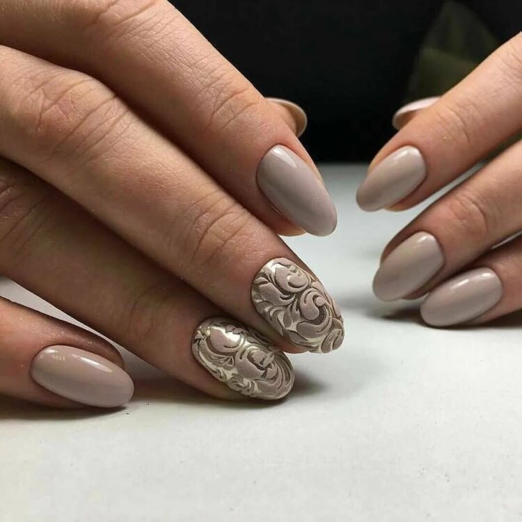 Також користуються попитом пастельні відтінки. Вони надають образу ніжності і жіночності. Особливо якщо в якості елемента декору будуть вензелі і візерунки. Також можна додати втірку або фольгу. Для класики варто виконати манікюр з доповненням у вигляді страз.