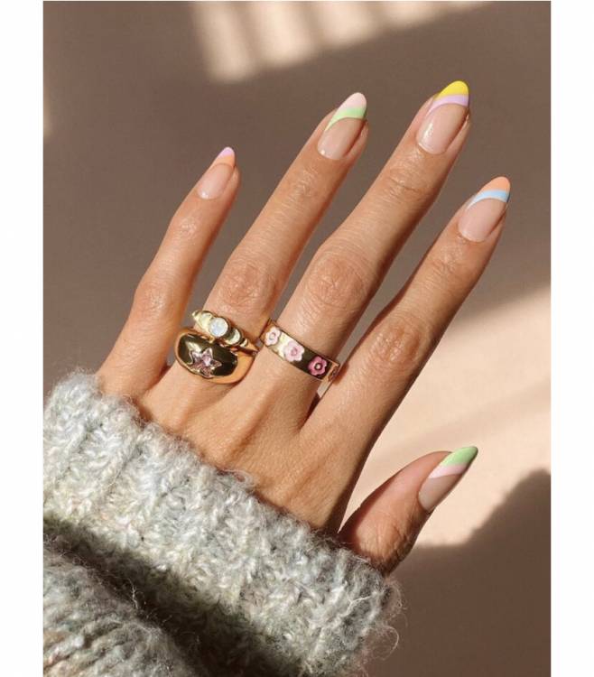 Головний тренд – ніжні напівпрозорі відтінки. Класичний рожевий або бежевий можна поєднувати з блакитним, жовтим, фіолетовим. Але й яскраві кольори не варто ігнорувати, особливо якщо дозволяє дрес-код. Сміливим підійдуть класичний червоний лак, різнобарвний манікюр, як у Джіджі Хадід, або неон. Наважтеся на останній – беріть приклад із Селени Гомес: лаймовий манікюр вона поєднує з рожевими стрілками.