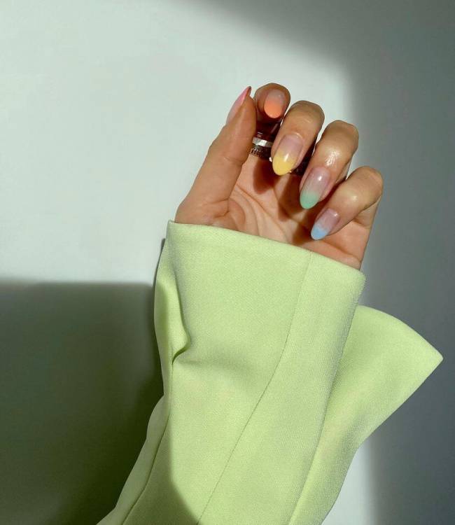 Головний тренд – ніжні напівпрозорі відтінки. Класичний рожевий або бежевий можна поєднувати з блакитним, жовтим, фіолетовим. Але й яскраві кольори не варто ігнорувати, особливо якщо дозволяє дрес-код. Сміливим підійдуть класичний червоний лак, різнобарвний манікюр, як у Джіджі Хадід, або неон. Наважтеся на останній – беріть приклад із Селени Гомес: лаймовий манікюр вона поєднує з рожевими стрілками.
