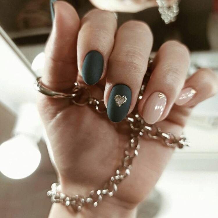 Особливою розкішшю в манікюрі відрізняється втірка. Неймовірно статусно вона буде виглядати в парі з смарагдовим покриттям, стразами, а також елегантним френчем.