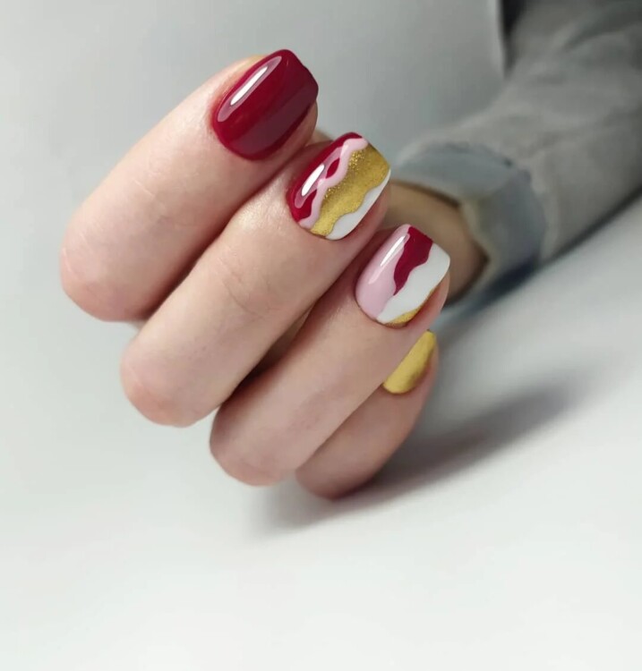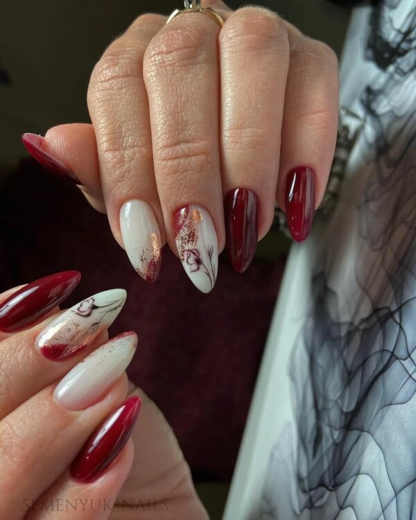 Урізноманітнити вишневий манікюр ви можете найрізноманітнішими техніками. Найчастіше можна зустріти однотонний нейл-арт або фен-шуй. Останній передбачає нанесення різних кольорів лаку на різні нігті. Якщо вибираєте комбінацію відтінків, радимо придивитися до чорного, золотого, срібного, білого, молочного, бежевого – вони універсальні і ідеально будуть виглядати в парі з вишневим лаком.