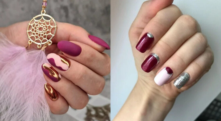 Урізноманітнити вишневий манікюр ви можете найрізноманітнішими техніками. Найчастіше можна зустріти однотонний нейл-арт або фен-шуй. Останній передбачає нанесення різних кольорів лаку на різні нігті. Якщо вибираєте комбінацію відтінків, радимо придивитися до чорного, золотого, срібного, білого, молочного, бежевого – вони універсальні і ідеально будуть виглядати в парі з вишневим лаком.