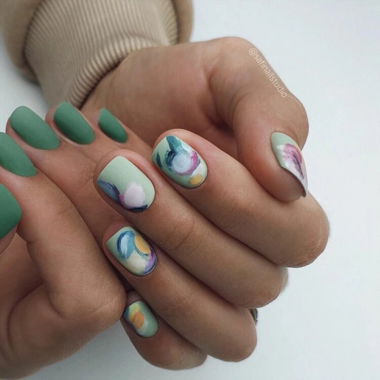 Манікюр з абстракцією – зовсім не обов’язково повинен бути яскравим. Ви можете вибрати пастельні тони лаку для створення шедевра на своїх нігтях і навіть нюдові.