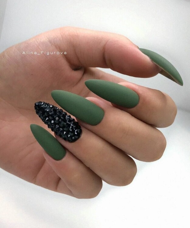Цікавий манікюр можна отримати навіть якщо оформити чорними стразами повністю весь ніготь. В цьому випадку вийде досить ефектний нейл-арт, який найчастіше вибирають для себе молоді леді.