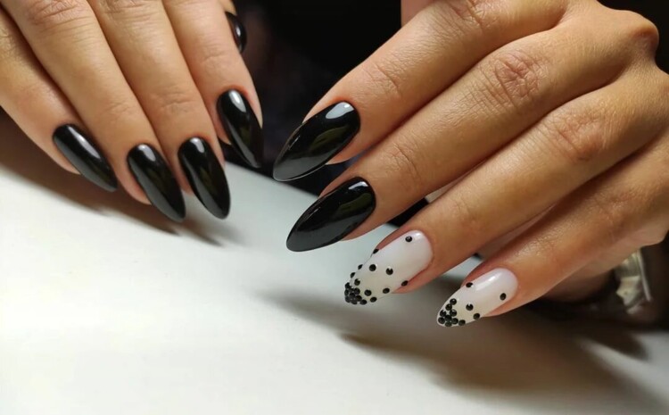Сьогодні ми підготували для вас свіжі фото ідеї модного манікюру з чорними стразами.