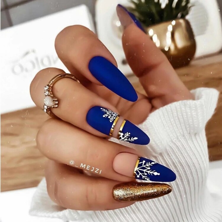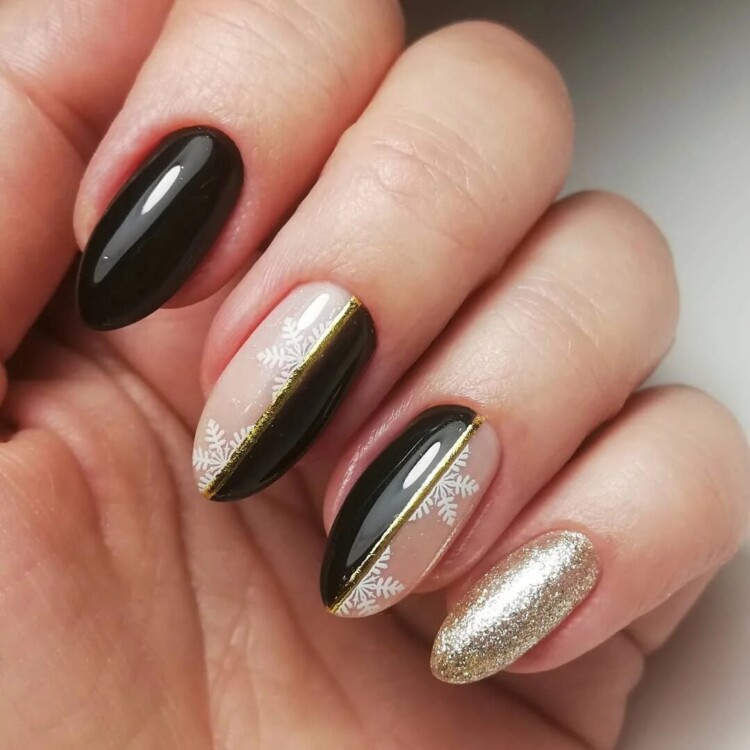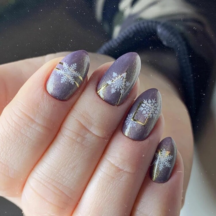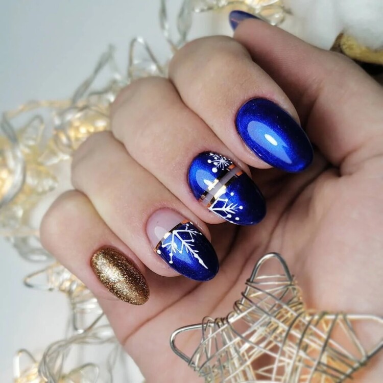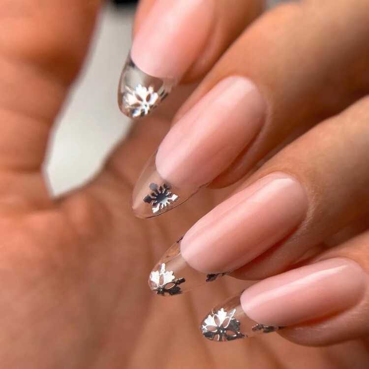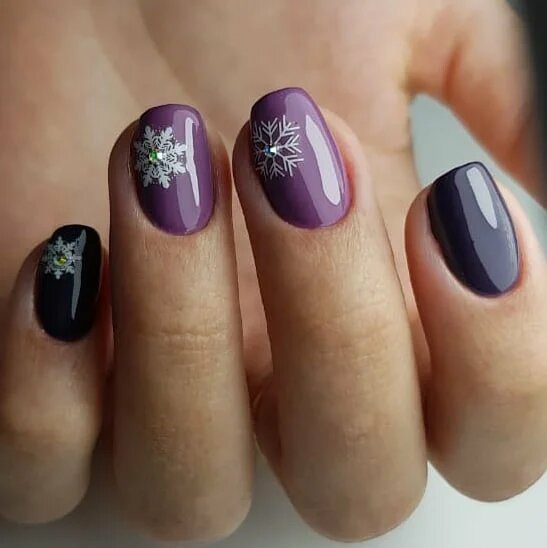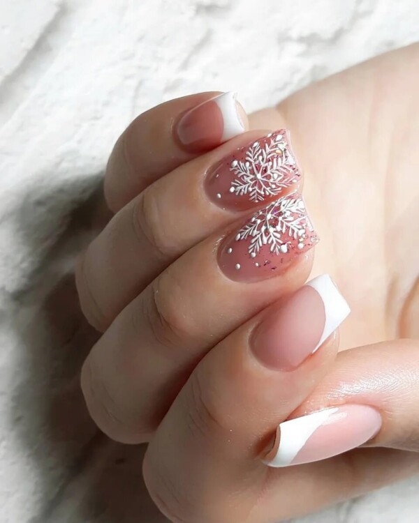 Манікюр зі сніжинками 2020 року – прекрасна ідея для зимового нейл-арту. Найчастіше головний візерунок розміщується на одному або двох нігтиках у вигляді цікавого акценту. Іноді можна зустріти сніжинку і на кожному нігтику. Стильно вона виглядає в парі з френчем, і причому необов’язково класичним. Фахівці радять не випускати з уваги трикутний, круговий, асиметричний френч, які можуть стати гідною прикрасою вашого манікюру.