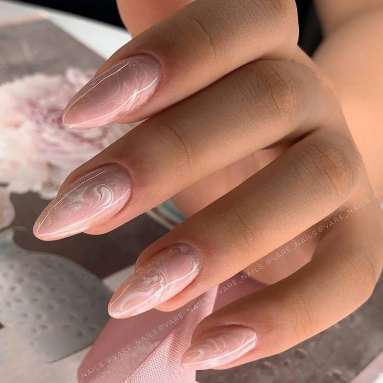 Серед безлічі варіантів нюдові нігті є ідеальною основою для створення мармурового. На нюдових нігтиках чудово виглядають візерунки будь-яких поєднань кольорів, неважливо, будуть це яскраві або приглушені тони.