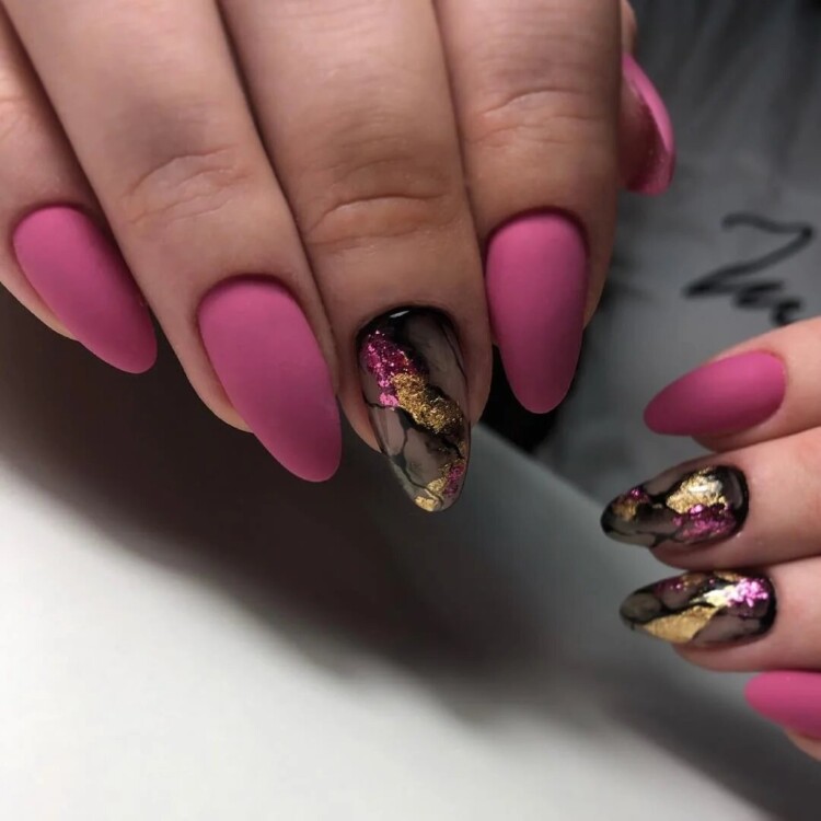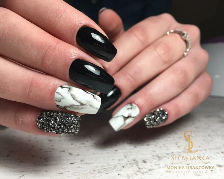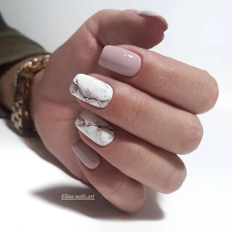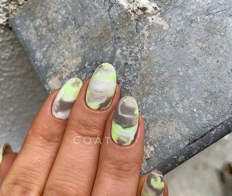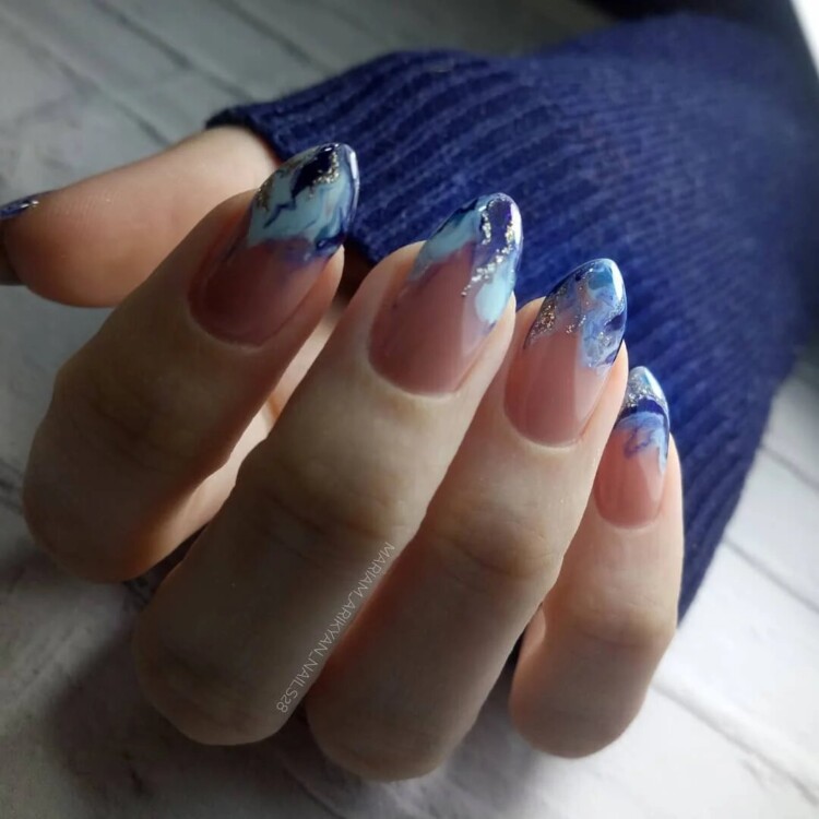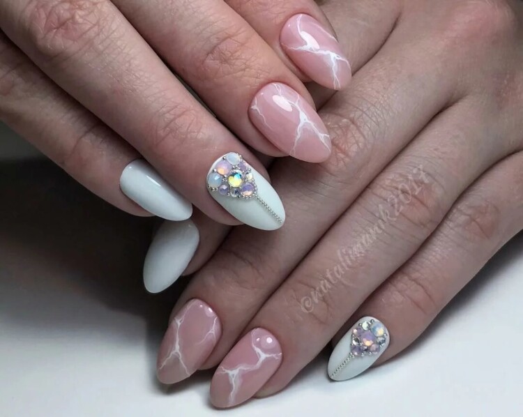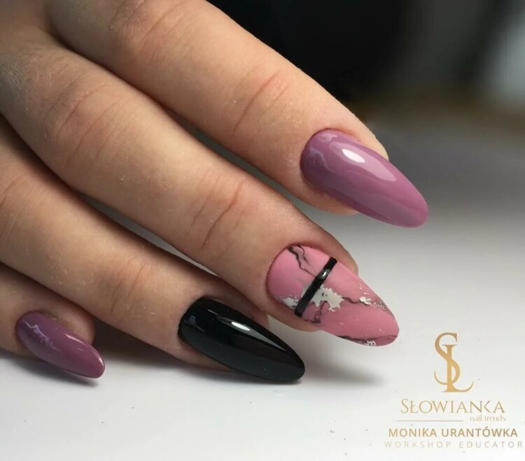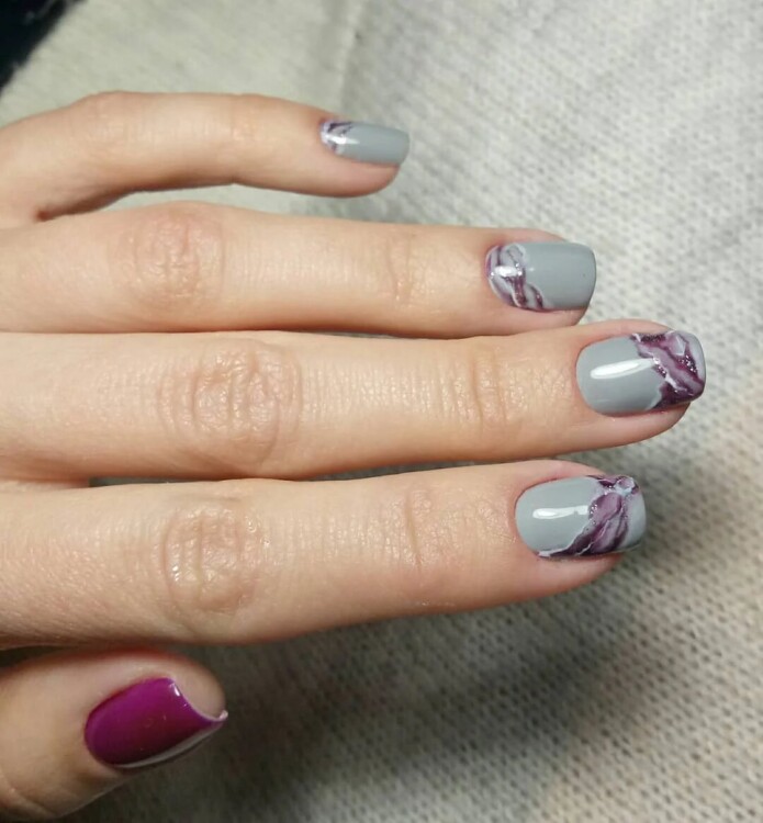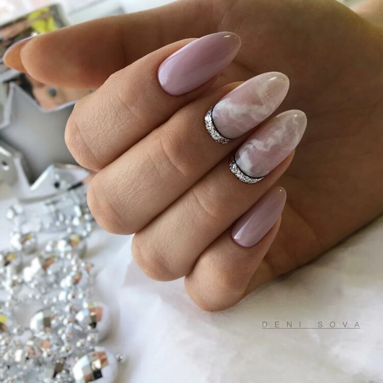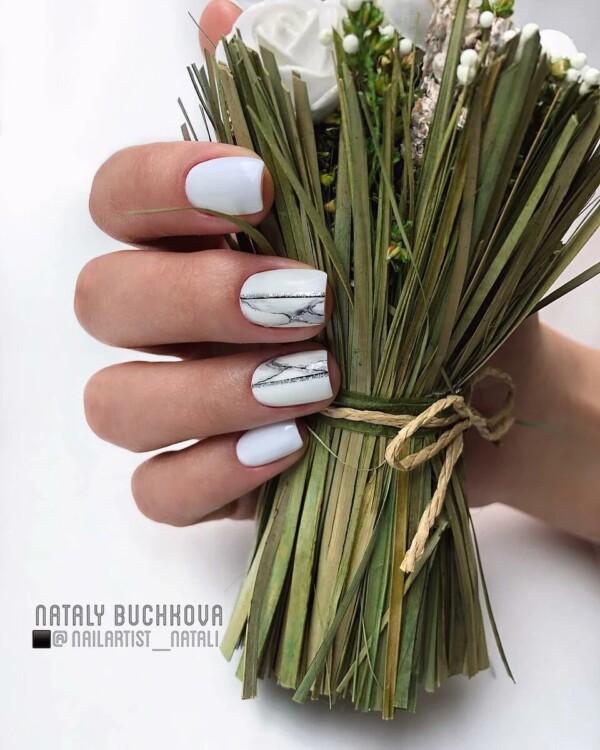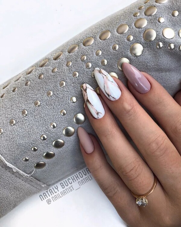 Найбільш популярний сьогодні мармуровий манікюр. Цей малюнок створюється завдяки найрізноманітнішим техніками. Хтось використовує техніку малювання по мокрому, інші звертаються до спеціальних наклейок, треті ж граються зі звичайною фольгою, створюючи справжні витвори мистецтва. Найбільш вигідно мармуровий манікюр буде виглядати в повсякденному образі, тому радимо в обов’язковому порядку спробувати один зі стильних дизайнів, представлених нижче, в один з ваших чергових походів до фахівця.