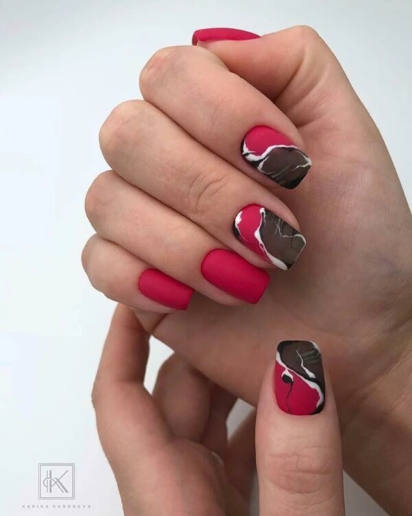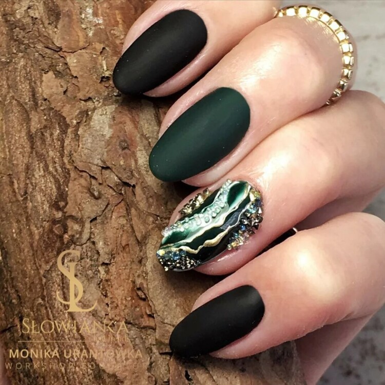 Не менш оригінально і стильно в жіночому луці буде виглядати манікюр з натуральними текстурами, але не в стилі мармуру. Тут в хід йде імітація інших, неймовірно цікавих і красивих каменів, які можна зустріти в природі.