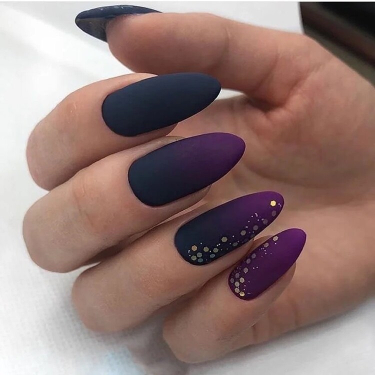 А як щодо літньої ночі? Матове покриття разом з глянцевим лаком будуть доповнювати один одного, а бризки від руки або наклейки стануть відмінним завершенням нейл-арту. Хто сказав, що неможливо дістати зірку з неба?