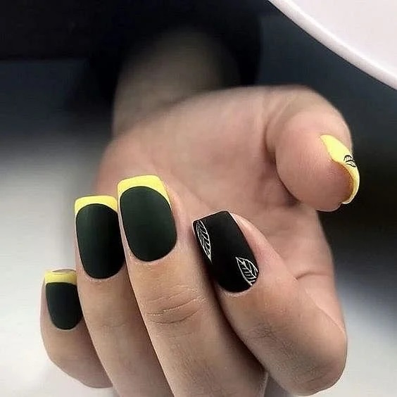 Спокусливий чорний або жовтий? Не потрібно вибирати, поєднуйте! Яскравий френч на матовому чорному покритті виглядатиме незвично.