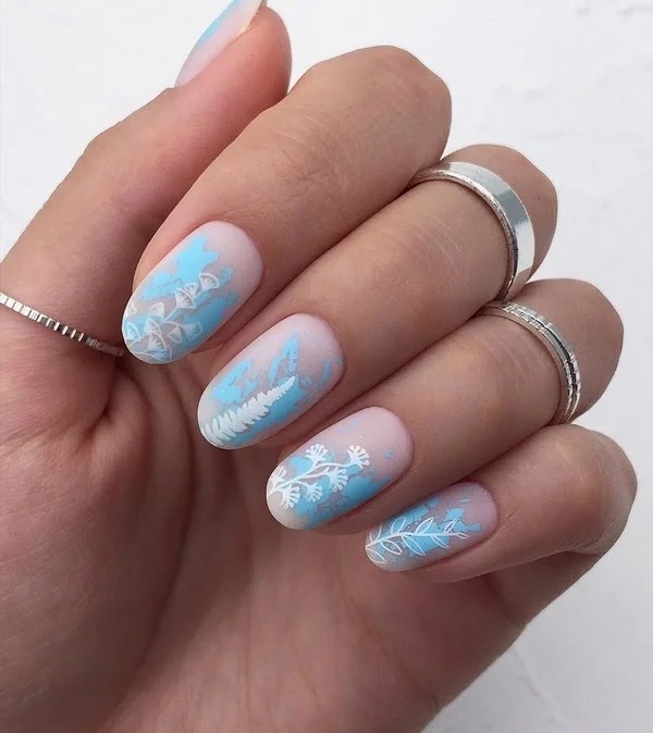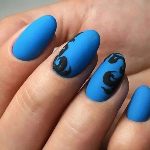 Якщо у вас овальна форма нігтя, то придивіться до техніки “стемпінг” і лаконічних узорів. Плавні вигини малюнка підкреслять форму, а матове покриття зробить нейл-арт ніжним.